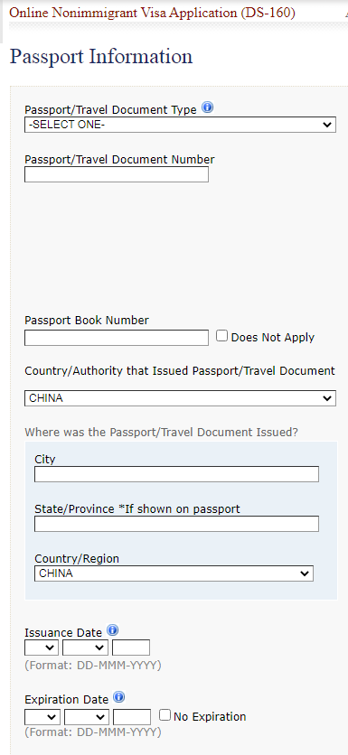 护照信息,这里比较简单,P,S护照选OFFICAL,D选DIPLOMATIC。