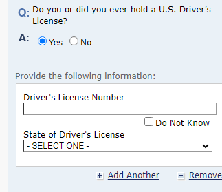 如果你有美国驾照,需提供驾照号码和签发的州。号码不记得就勾不知道。