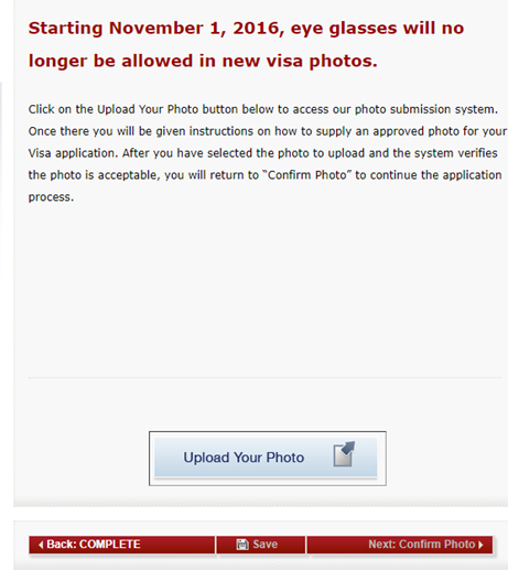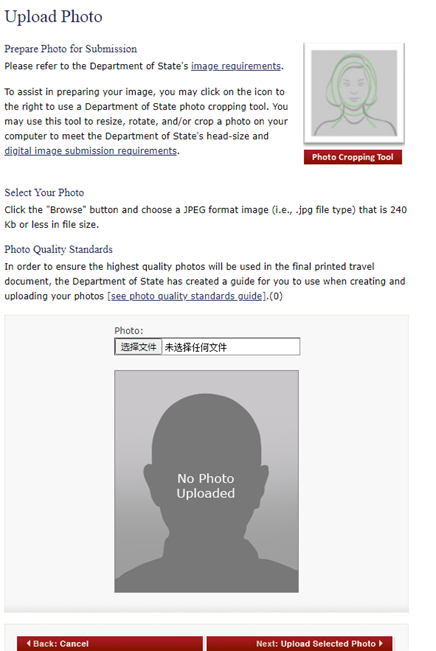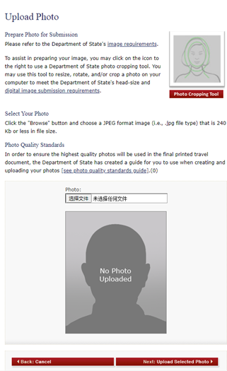 美国网站的照片库出问题,这时候你点击下一步不会进入下一页,只有等网站修复后才能继续申请。