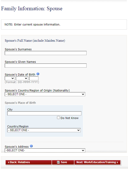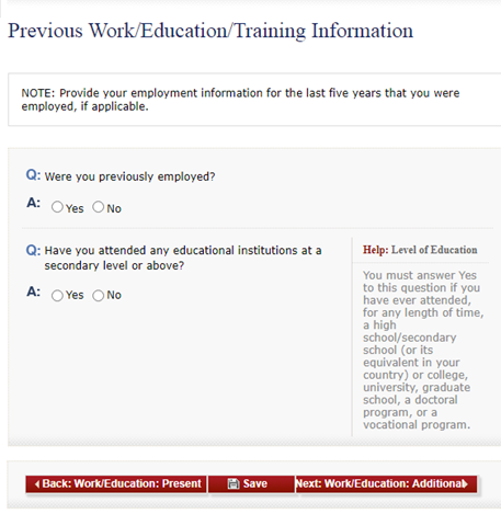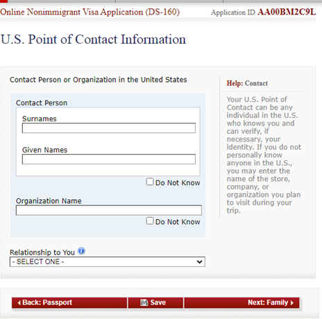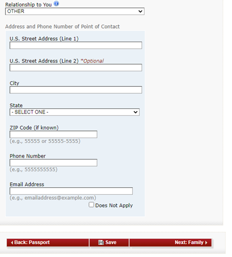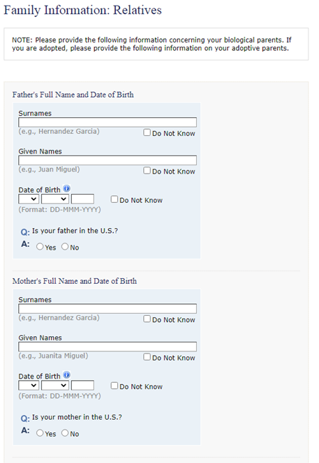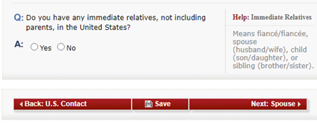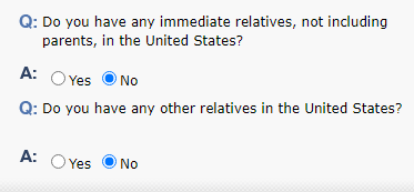 如有亲属在美国,需要表明他们的身份,一般分为:公民,永居,非移民,如果不知道,就选不知道。