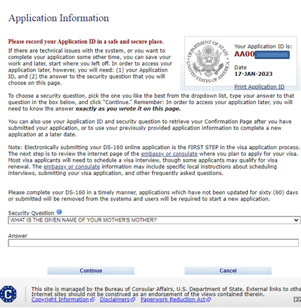 注意 ,右上角是你的申请号,记录下来,美国网站一个页面停留久了容易跳出,有号码可以迅速找回。