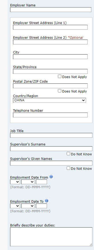 如果最近五年换过工作的,需要提供近两次的信息,如下图,如果没有,选NO