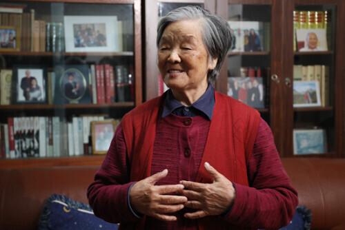 今年已94岁高龄的王江云老人,起身郑重地从桌边柜上取出助听器,塞进两耳,并反复调整、检查,方才安心坐定。