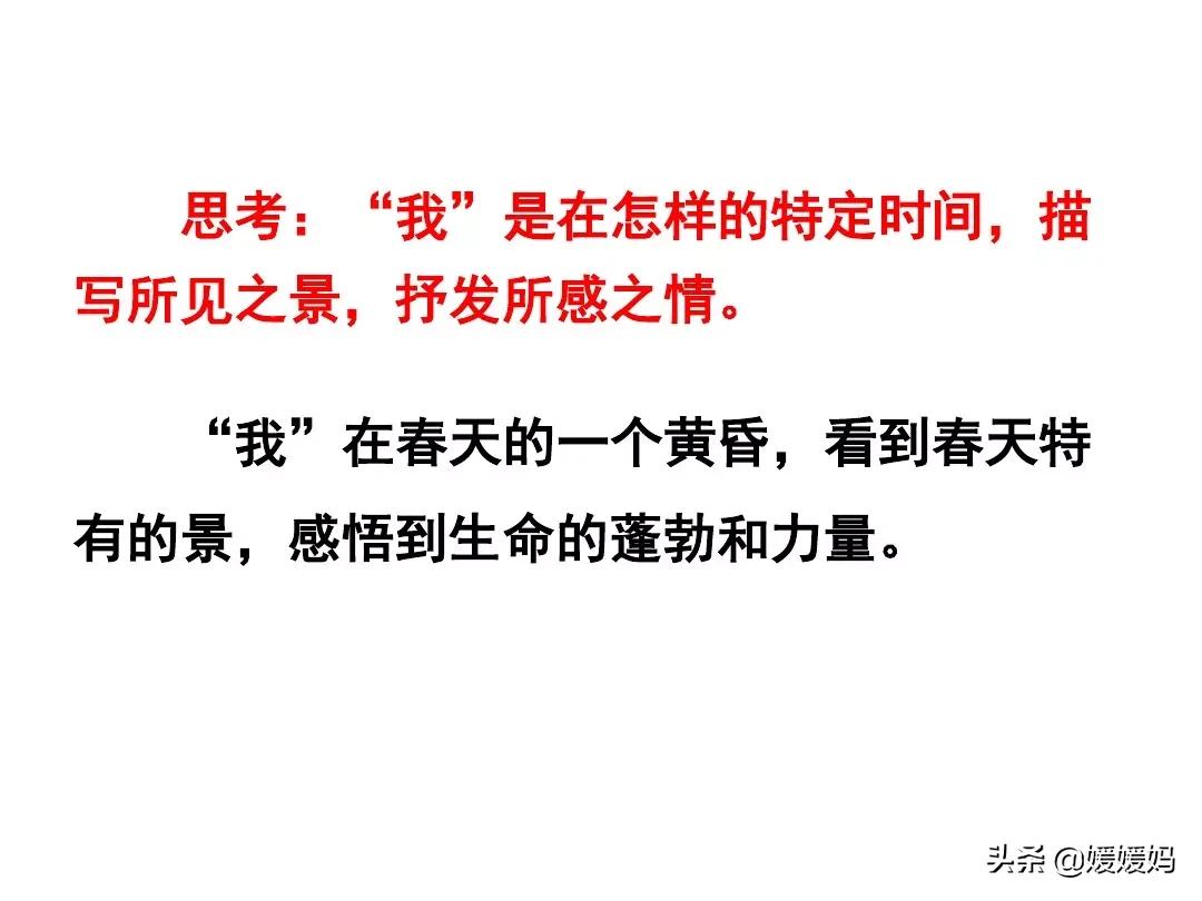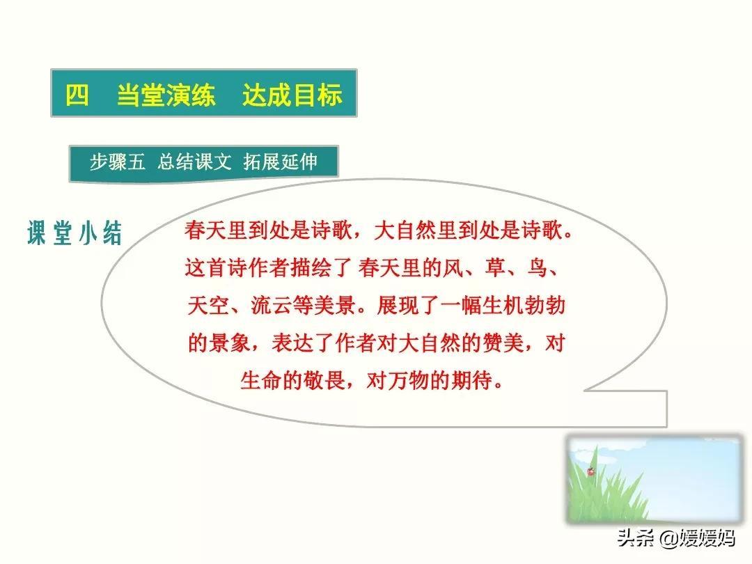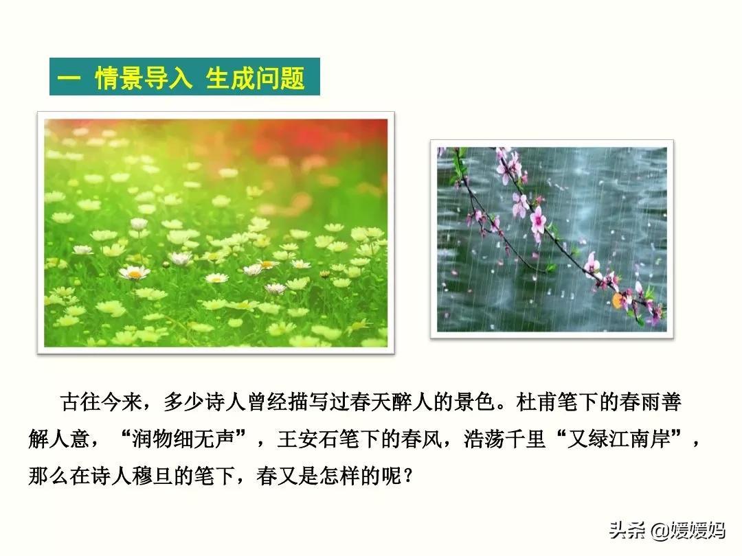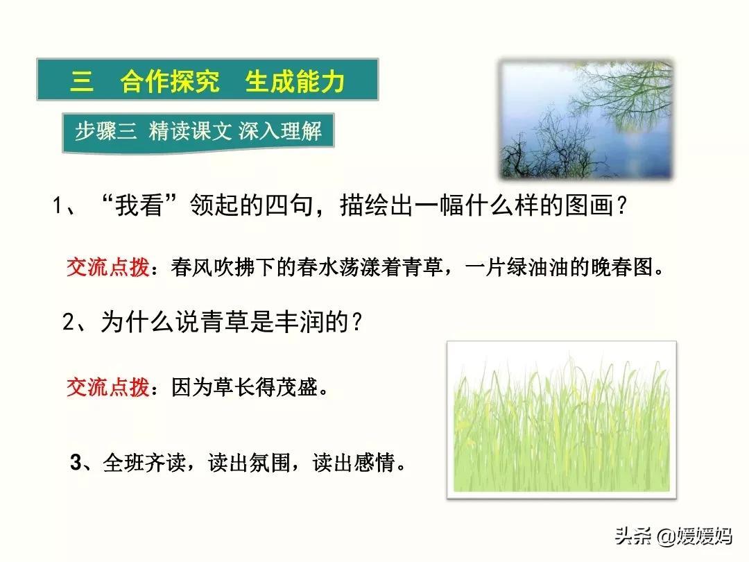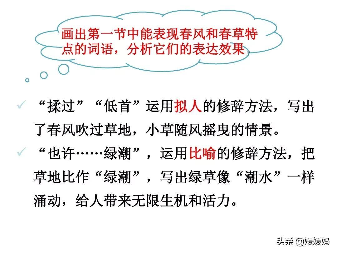 本题运用诗歌画面描绘法。描绘了向晚的 春风、丰润的青草,这些景物构成了一幅傍晚时分柔美恬静、充满生机的春景图。