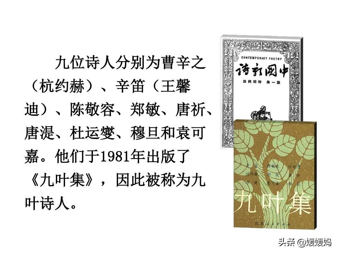 “九叶诗派”因《九叶集》而得名,这本9位诗人的合集出版于1981年7月,但九叶诗派作为中国现代诗歌史上的一个流派却活跃于 20世纪40年代后期的国民