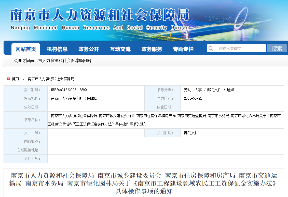 为全面贯彻落实《南京市人力资源和社会保障局 南京市城乡建设委员会 南京市住房保障和房产局 南京市交通运输局 南京市水务局 南京市绿化园林局关于印发南京市工程建设领域农民工工资保证金实施办法的通知》(宁人社规〔2022〕8号)(以下简称《实施办法》),扎实推进和规范我市工程建设领域农民工工资保证金存储、使用和返还等工作,结合我市实际,现就《实施办法》具体操作事项通知如下:
